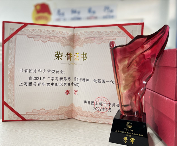 日前,由共青团上海市委员会、“学习强国”上海学习平台主办的“学‘七一’讲话 做强国一代”上海团员青年党史知识竞赛落幕,我校“奋进东华”团员青年代表团队位列高校赛区第一名,在本次竞赛中荣获季军。
